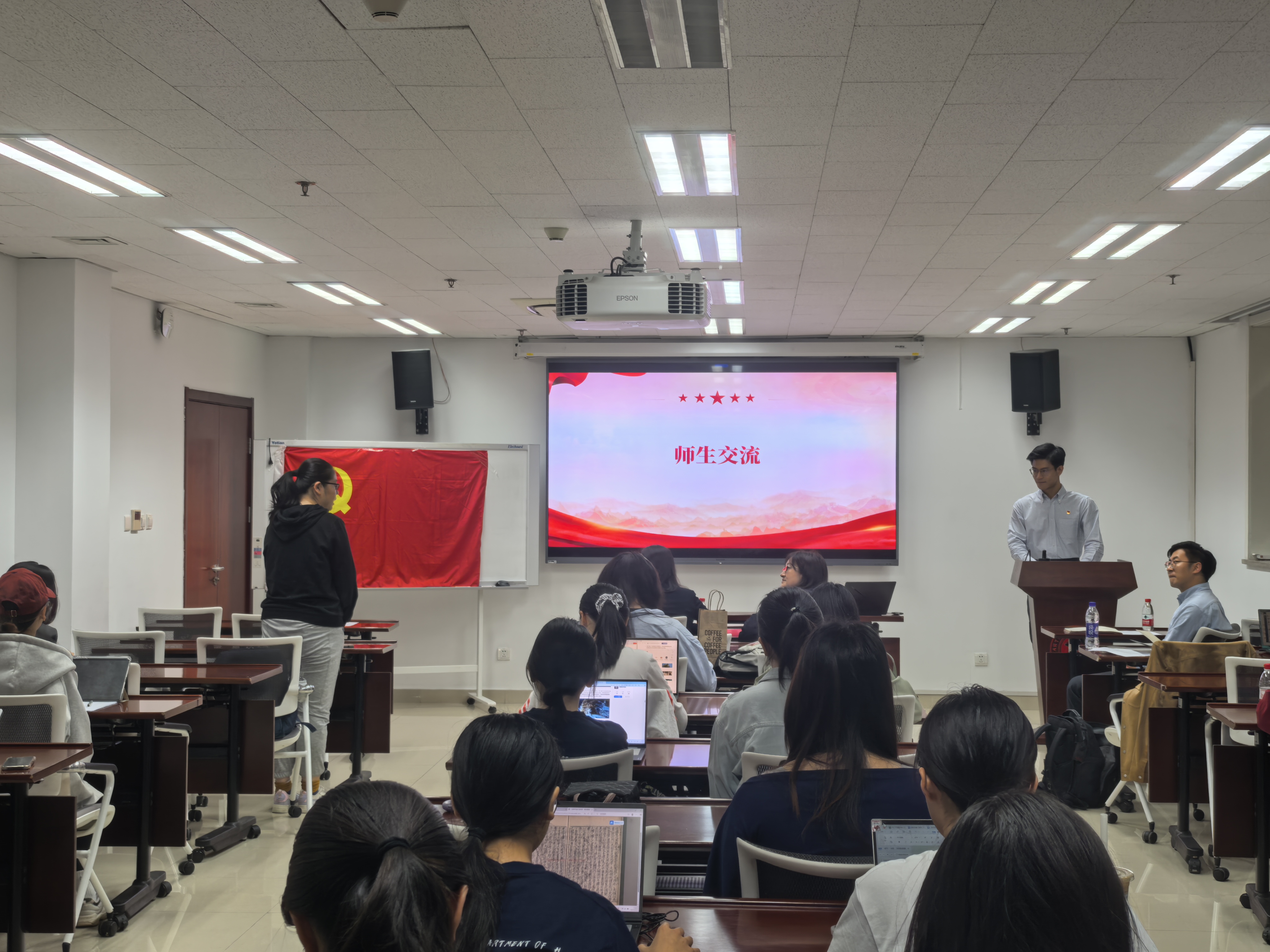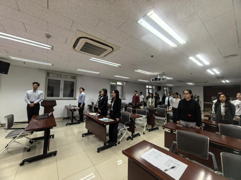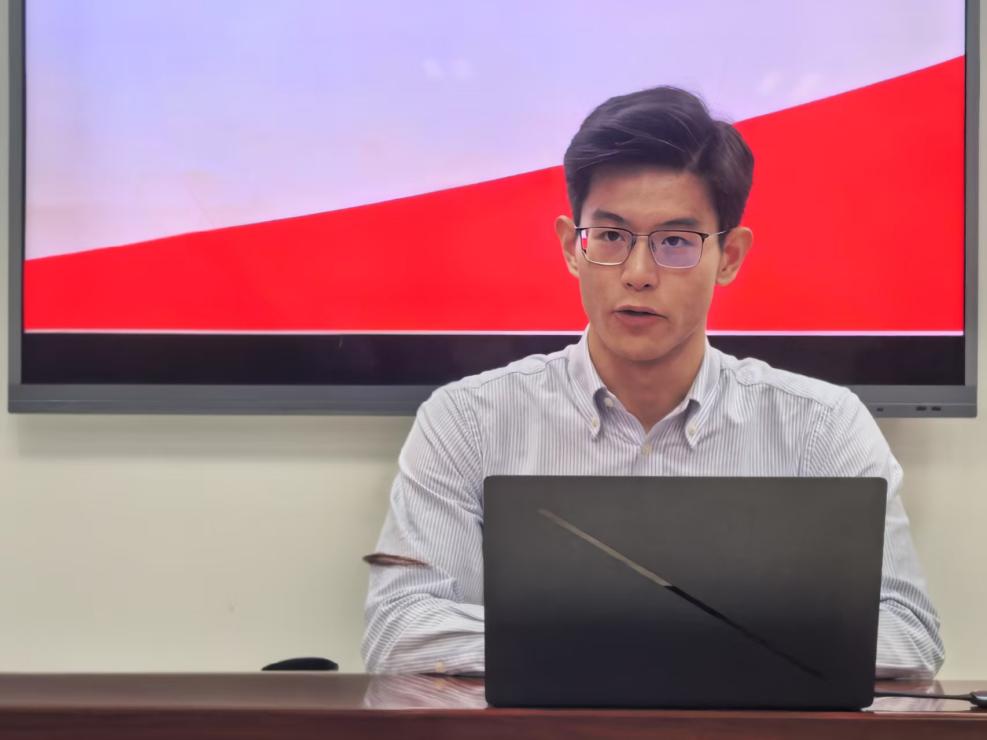 会议伊始,主持人黎子承报告参会情况,全体与会人员奏唱国歌,第一党支部和第二党支部成员通过面对面的介绍与互动,增进到场人员对彼此的了解,为后续共同学习中央八项规定精神、开展支部建设工作奠定了沟通基础,随后由吴雅文老师、第一支部支书黎子承与第二支部支书宋依凡依次讲党课。