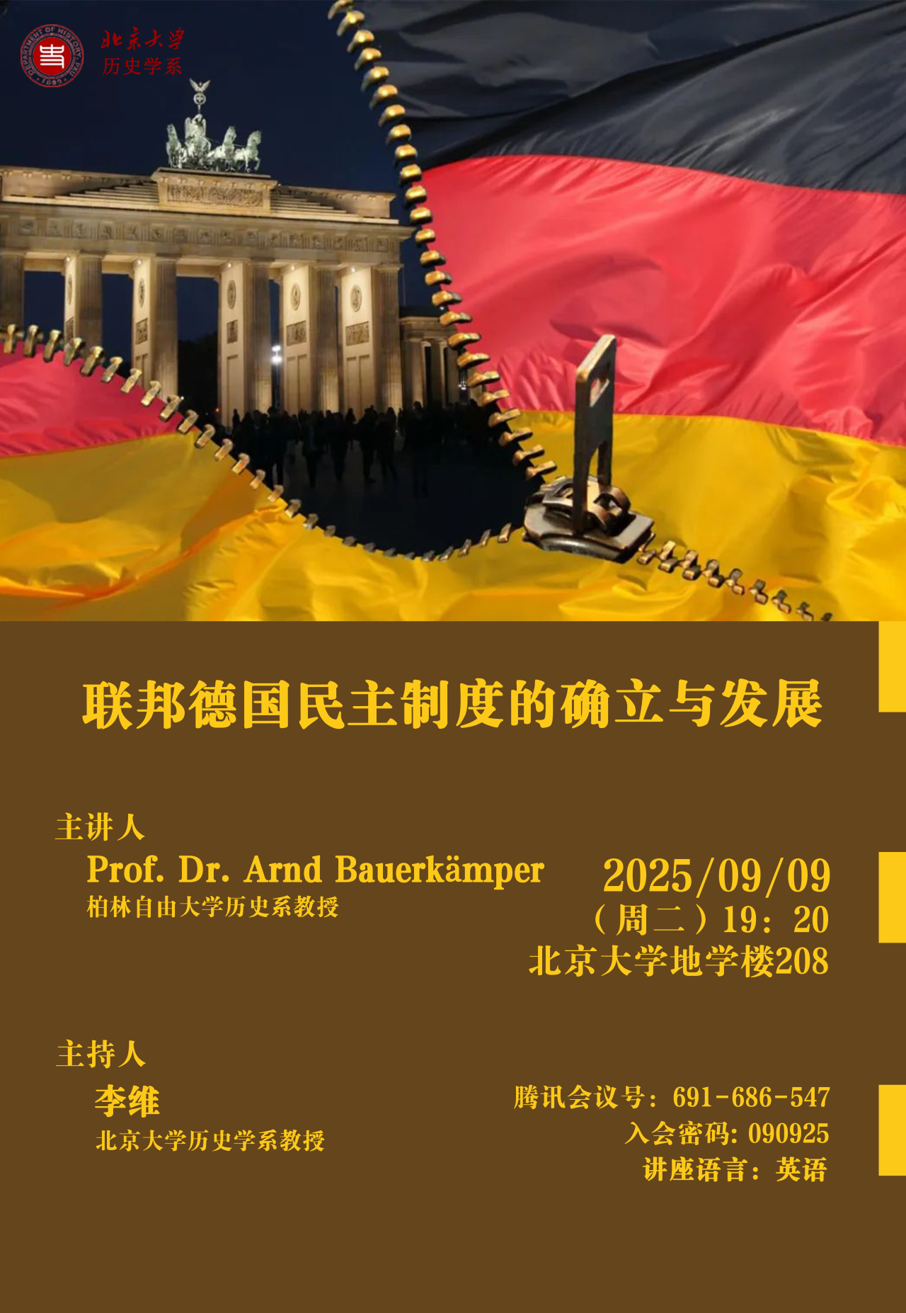 2025年9月9日,应北京大学历史学系邀请,柏林自由大学Arnd Bauerkämper教授做了题为《联邦德国民主制度的确立和发展》的讲座,我系李维教授主持。2025-09-30 -